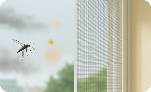 Con una eficiencia mucho mayor que las redes de malla convencional, nuestra malla no solo impide la entrada de insectos, sino que también impide la entrada de partículas de polen, polvo, PM 2.5